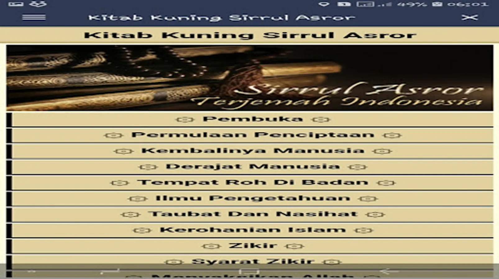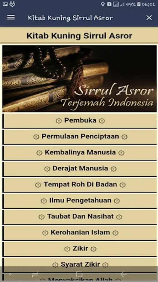 Contents Sirrul Asror's Yellow Book Application :