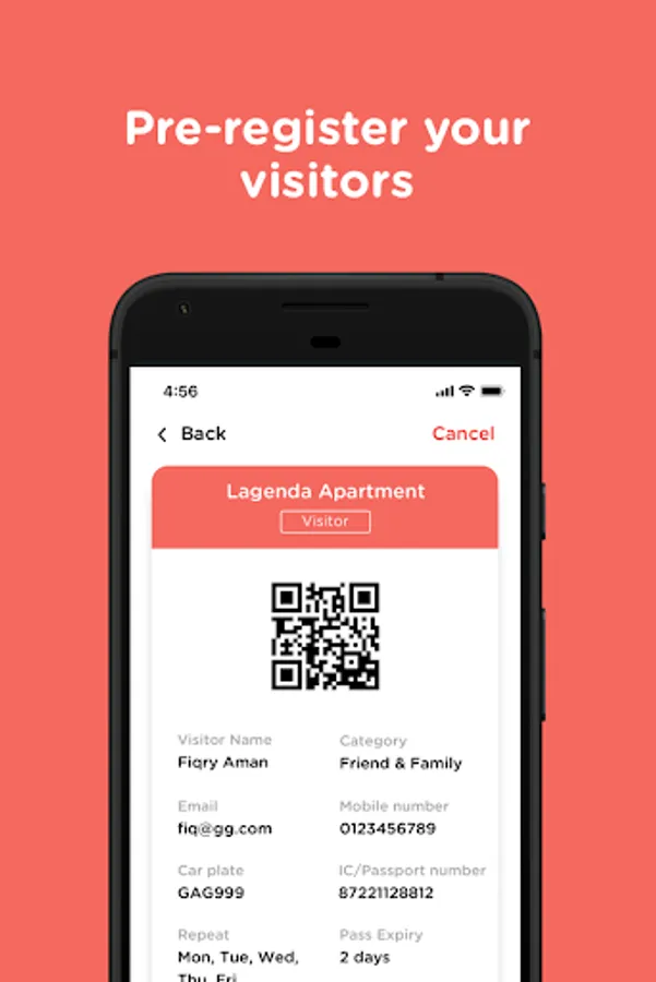 - Create QR E-passes for visitors