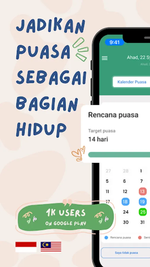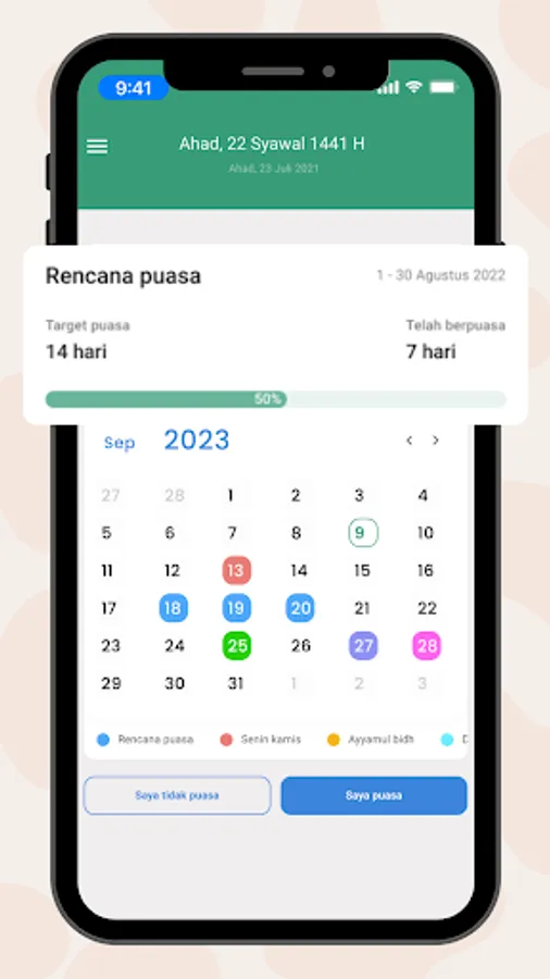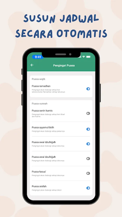 The Companion Fasting application is designed to keep you always reminded of missed fasts. With customizable reminders, you'll never forget qada fasting again! Receive timely notifications that will help you stay consistent and committed throughout the year.