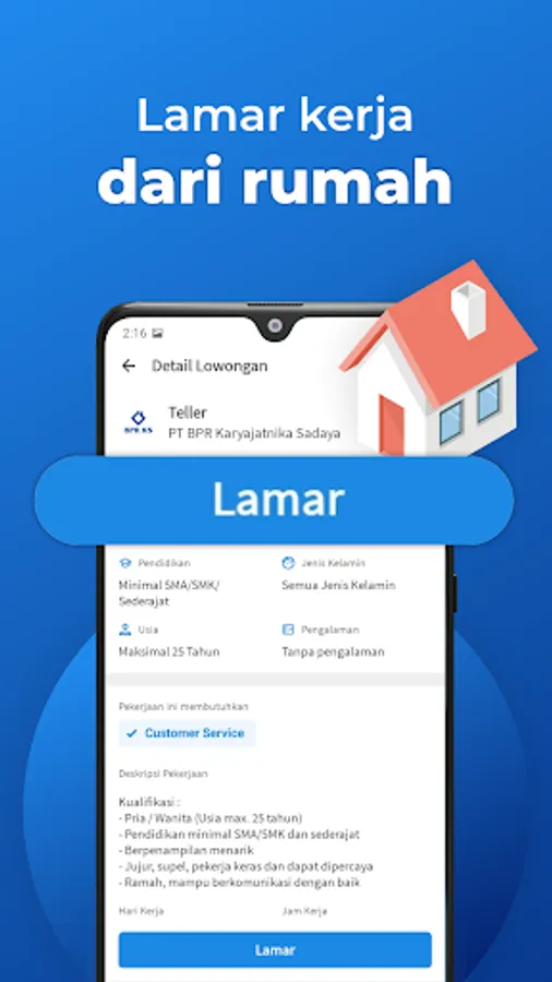 All job vacancies in KitaLulus already passed a strict selection process and no fraud guarantee. There are many job types such as intern, part-time, full-time, and freelance you can apply carefreely.