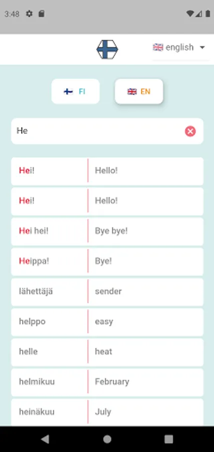 Finnish vocabulary and phrases. It will be useful for people studying textbooks Suomen mestari 1, 2.