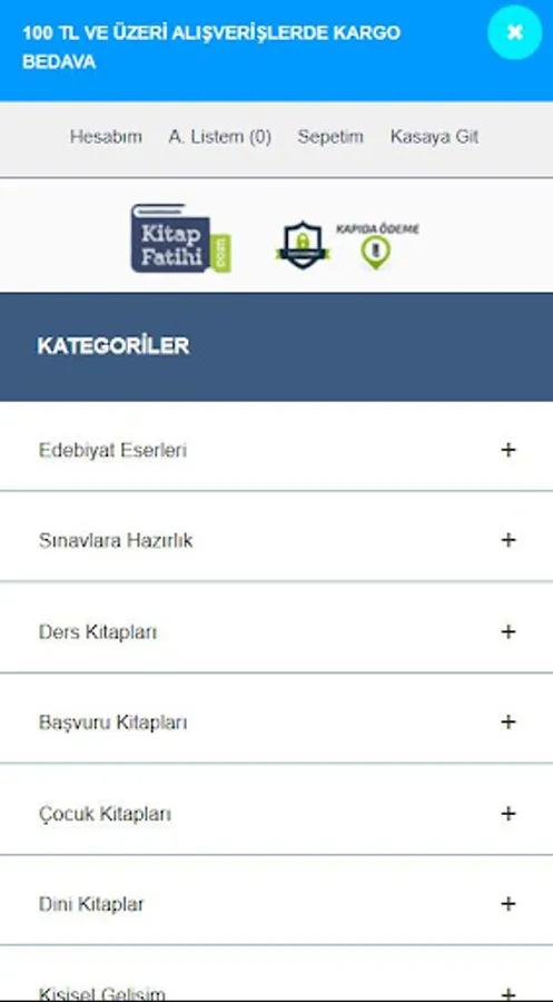 You can have the books you are looking for with an affordable price and application. We serve more affordable prices than all bookstores and bookstores on the internet. In addition to many ease of payment, there are also payment methods at the door. Your orders for books and stationery are shipped on the same day and delivered to your address quickly. Our website and application has a secure shopping certificate. You can shop with peace of mind. Here are some of the book types in our company, where all kinds of books are included; Literary works, various novels, Turkish Literary works and world classics, children's books, exam preparation books, religious books, personal development books, psychology books, education and advisory books, and many other categories. Follow us constantly, fill your house with a book with our opportunities and campaigns.
