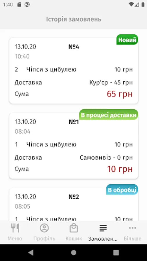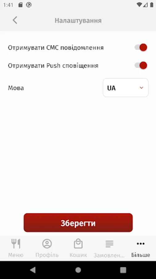 Functionality for customers of the institution: Catalog, menu, product search, shopping cart, delivery service, customer's personal account