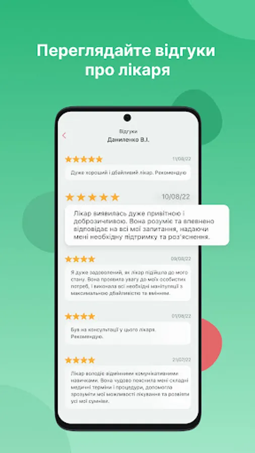 SUPPORT FOR WHICH DOCTORS IS AVAILABLE IN THE APPLICATION: