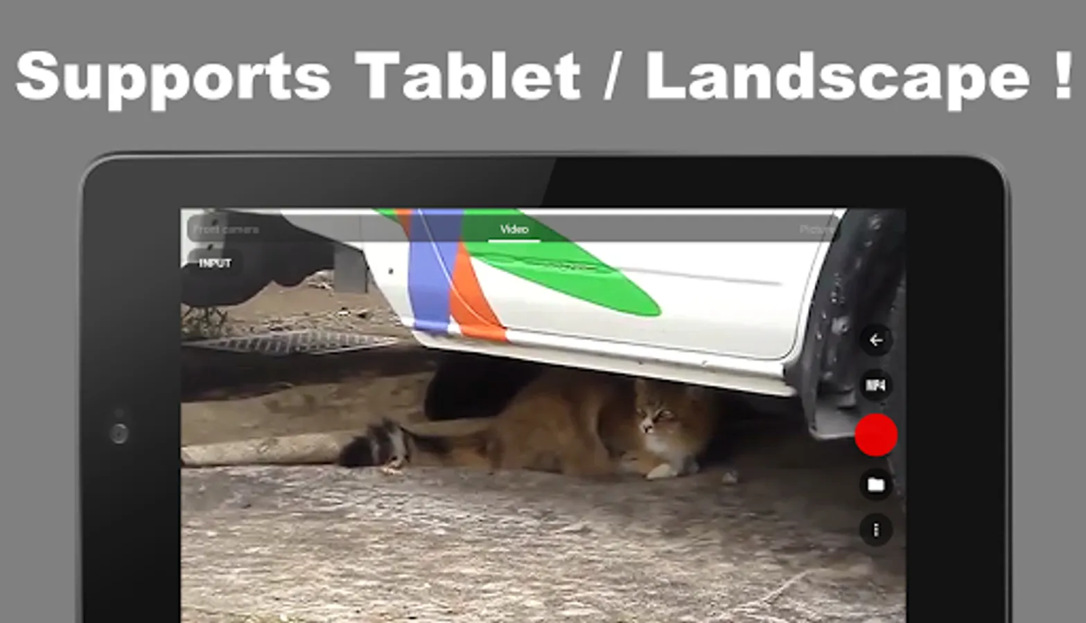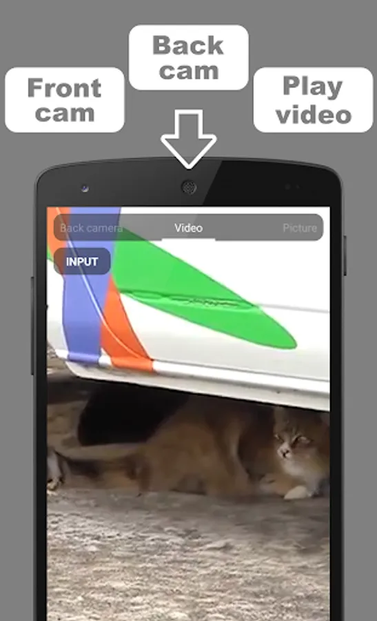 This is a camera app. You can taken images from back camera, front camera or video playback (Local or URL).