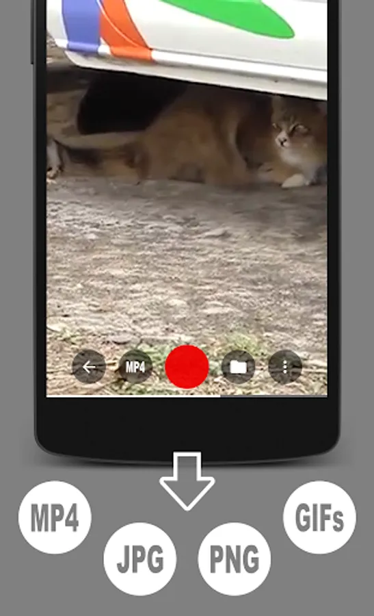 Supports record format as MP4, JPG, PNG, Animated GIF. You can recording video to gif.