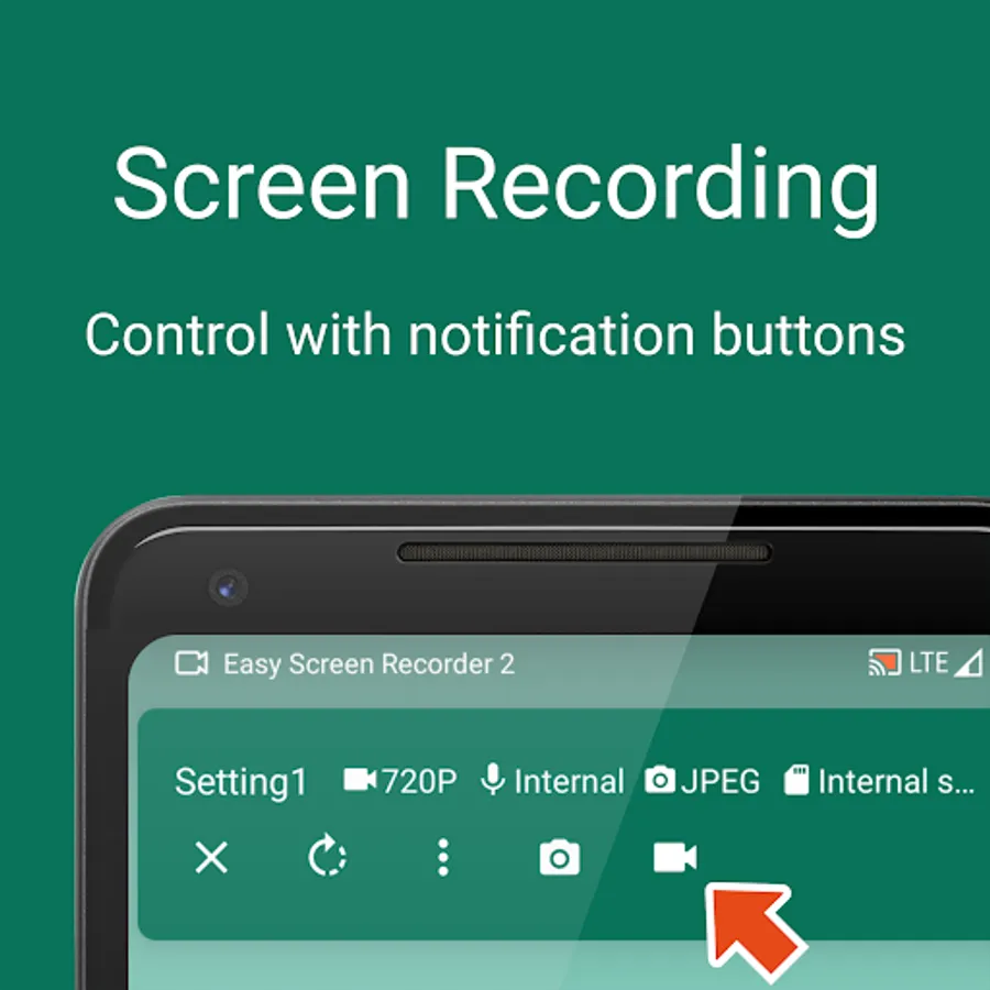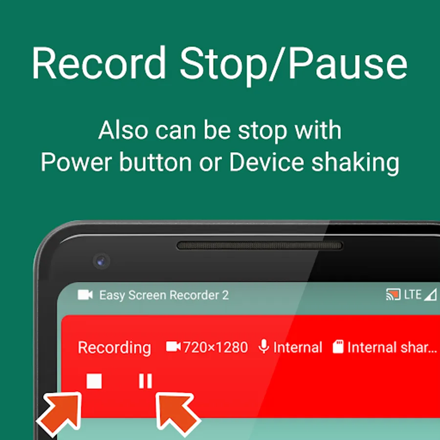 Start/Stop/Pause screen recording, Start ScreenShot, Change current setting etc with notification buttons. Also can Stop recording with power button and Pause recording with device shake.