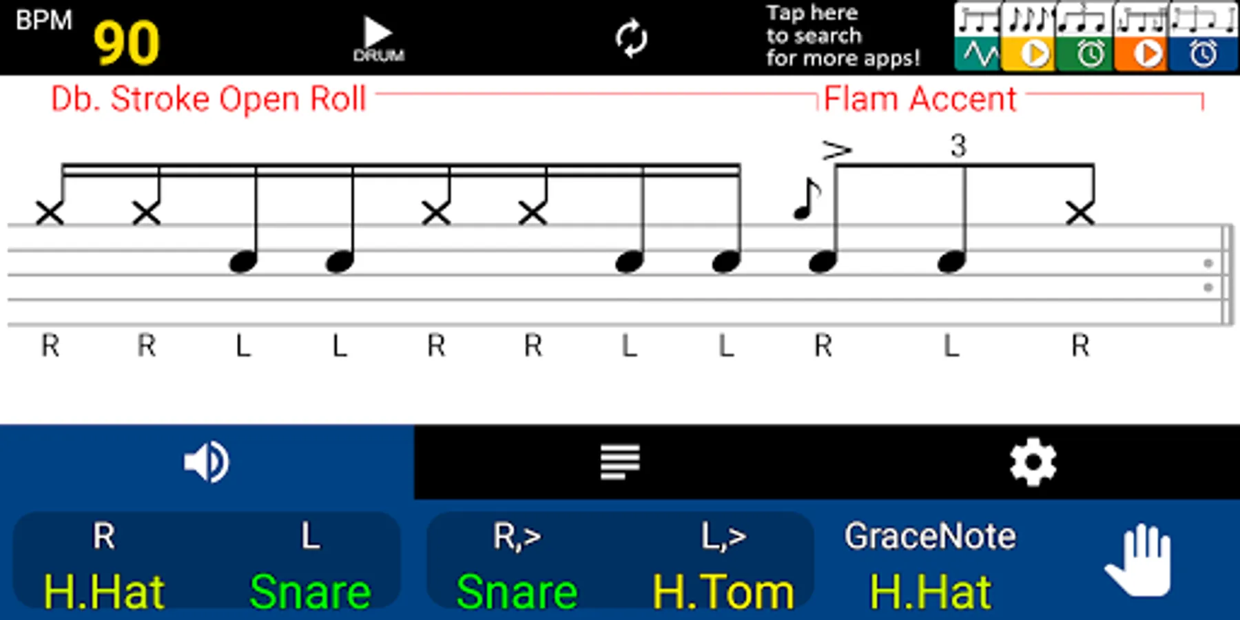 https://play.google.com/store/apps/details?id=com.kitbread.drumrudimentplayer