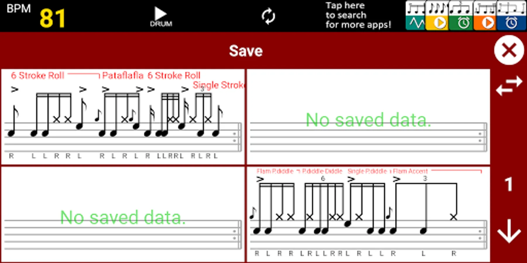 If you want rudiments or random drum pattern generator :