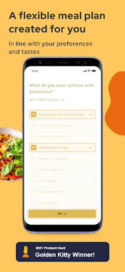 1. Weekly personalized meal plans, curated by our team of chefs according to your goals and preferences