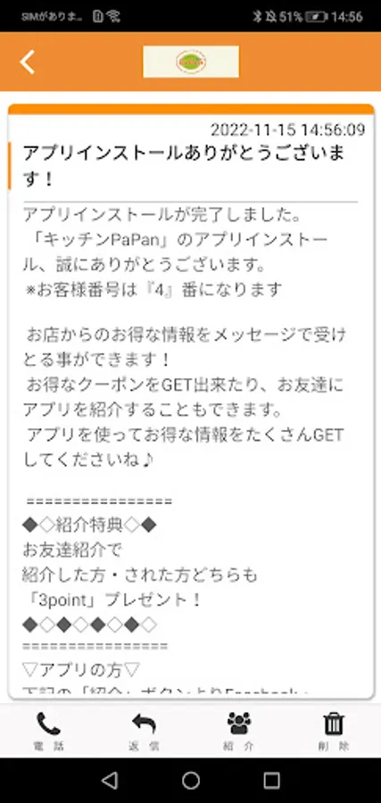 With this app, you can receive the latest information on Kitchen PaPan and use convenient functions.