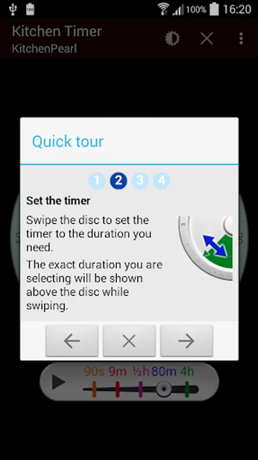 This kitchen timer can run in the background. So you will have your phone or tablet available for other purposes. And when your dishes require your attention, you will be alerted by an adjustable ringtone or optional vibration.