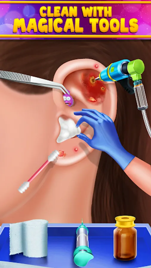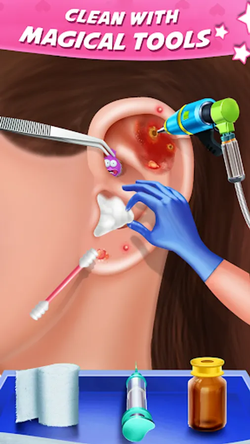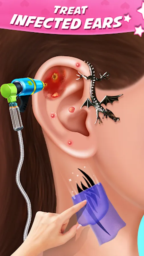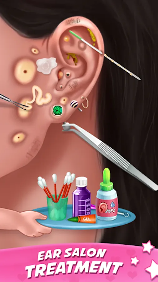 Dirty ear can create hearing issue so, you need to learn how to clean your ear in this ASMR earwax clinic games. What all you need to do is use cotton swab for ear cleaning in ear clinic games. Earwax cleaning is an oddly satisfying games with the ear art activity and tattoo drawing.