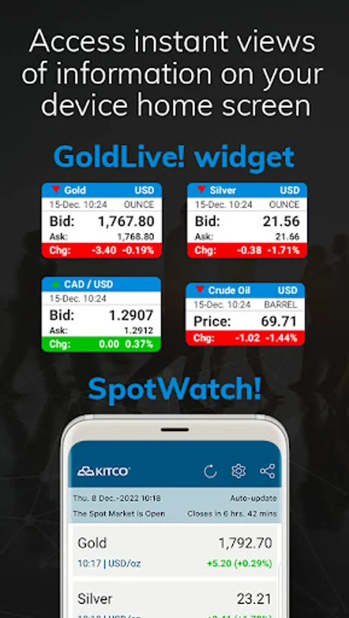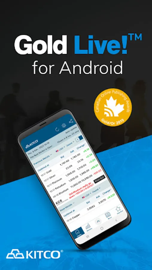 Kitco’s new and improved, award-winning* Gold Live!, gives you access to the latest market price quotes, charts, precious metals news and expert opinions in familiar but improved and exciting user experience. All the news and information you love in a better, faster and more intuitive package of our existing app, used by millions of users with an average user rating of 4.5-stars. Customizable widgets, and market alert features.