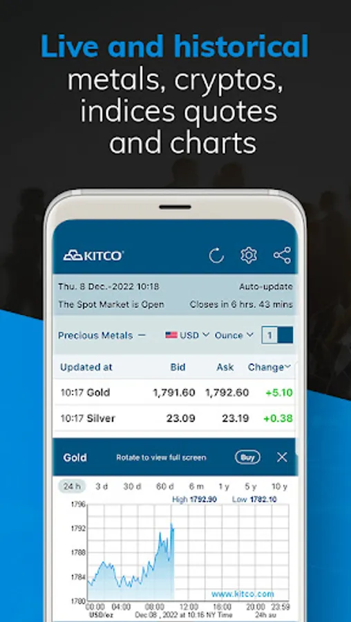 KEEP UP WITH THE MARKETS - Find market data on all the precious metals, base metals, mining equities, cryptocurrencies, FX and more -- always one tap away.