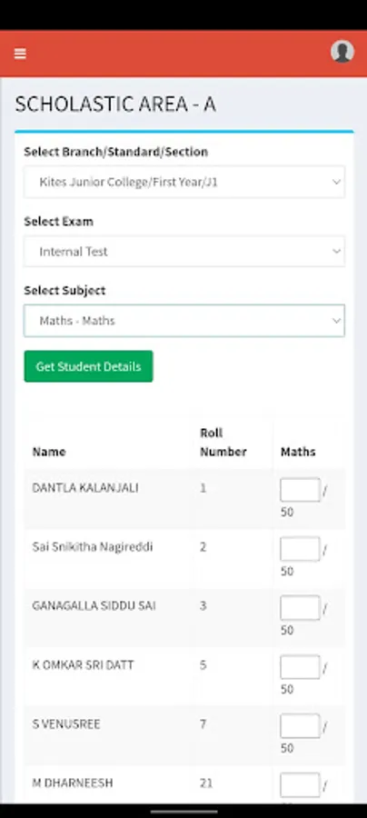 3. Assessments. Add/update Students' marks right from the app. Add students' weekly performance on pre-defined parameters.