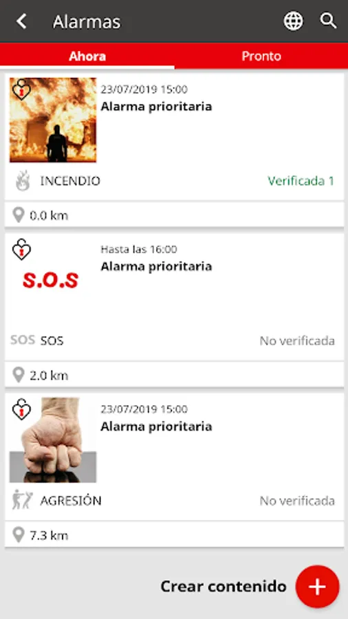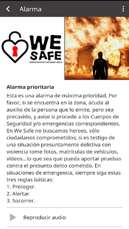 In situations of risk, alarms can be activated as a victim or witness, by sending an SOS with audio, photos, etc. thus alerting users of the platform that are near the place of the event, thereby achieving: deter the alleged aggressor, help the victim or provide evidence if necessary.