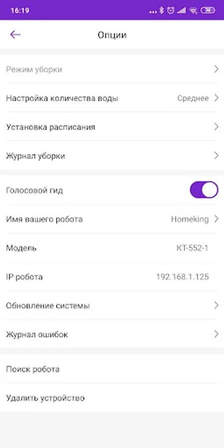 From the RoboKit application, you can not only start cleaning, but also change cleaning modes and instruct the robot to charge itself.