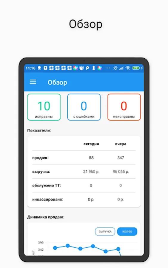 The KiT Shop mobile application is an indispensable assistant for the owner or operator of smart refrigerators/micromarkets. All the necessary information and statistics is available online right in your smartphone!