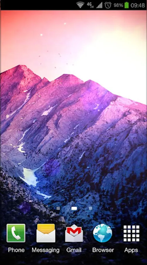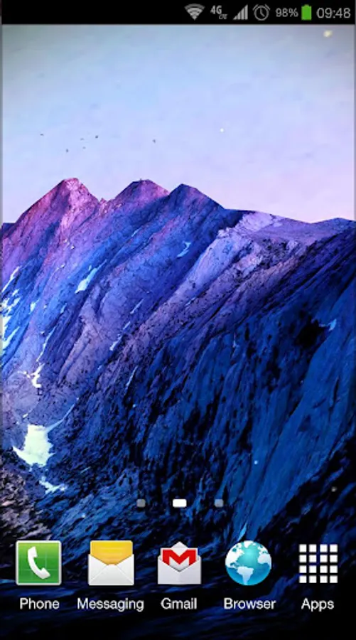 Installation: The main screen (long press) → Live Wallpaper → 3D Kitkat 4.4 Mountain lwp