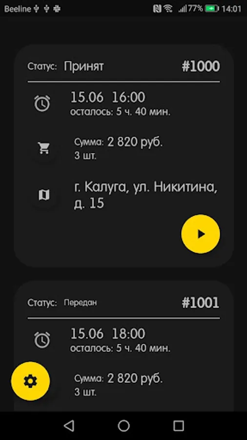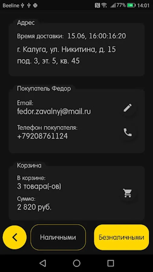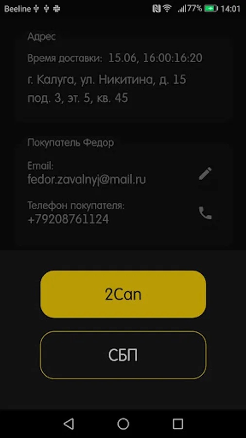 Kit Online Courier is an application for a courier that allows you to send him information about orders, track the progress and, if necessary, punch a receipt at a free price. The application has functionality for fiscalization and printing checks, acquiring non-cash payments (2Can, SBP).