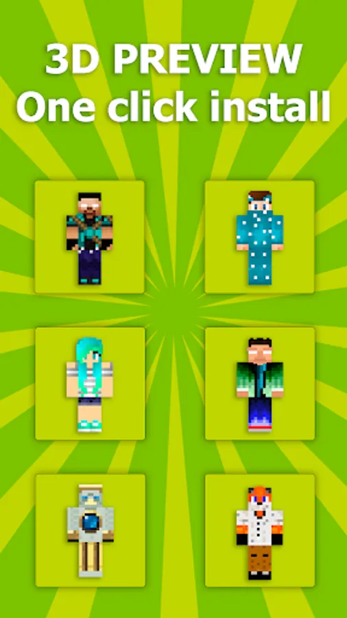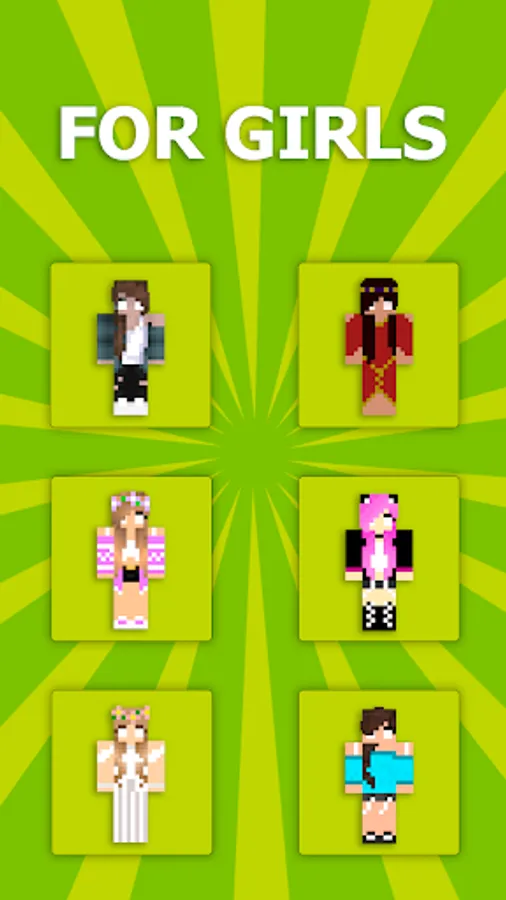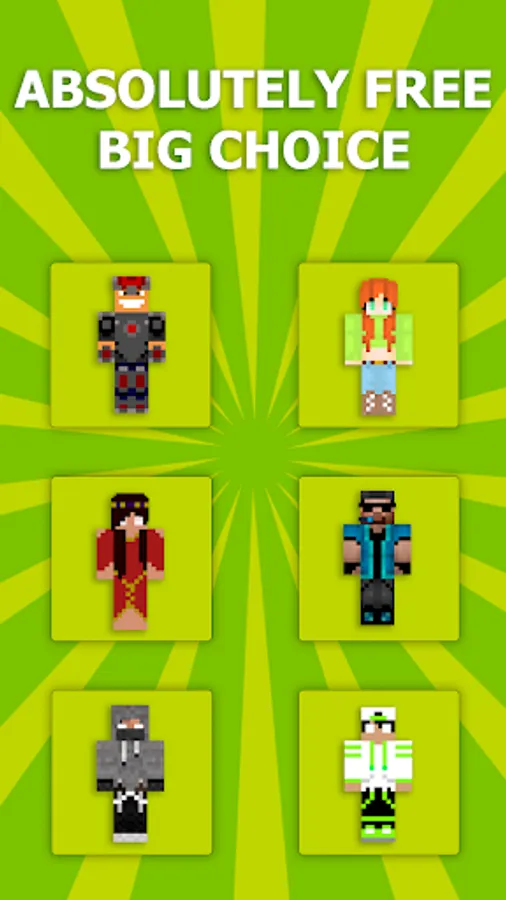 Skinpack contains: White-eyed Herobrine skins, hoodie, headphones, masks, glasses, ears, cap, emo, skins from anime, boys skins, colorful skins of girls with a crown or flowers, Santa skins Hirobrin, military skins of soldiers, skins of savages and poor, zombies, monsters, skins with a smile and many other popular skins you can find in this application.
