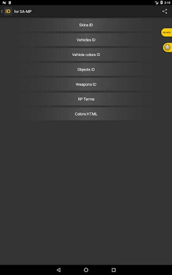 CONTENT: ID Skins, Transport ID, Object ID, Interior IDs, Different Colors, Complete RP List of Role Play Server Terms, Single Player Cheat Codes and more.