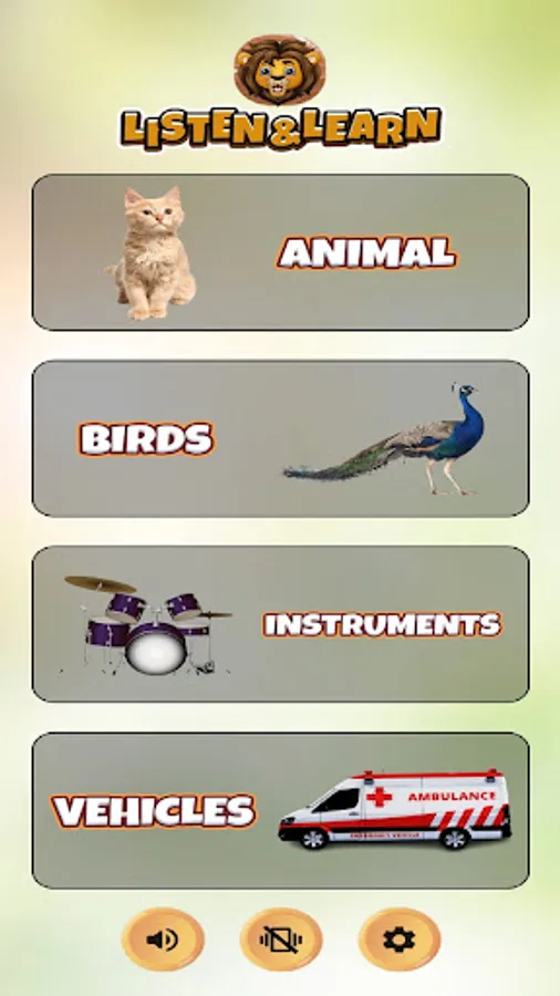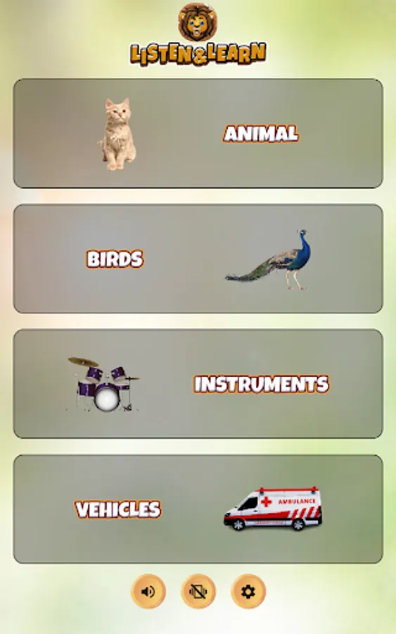 One of the key features of "Listen & Learn" is its extensive collection of sounds. Children can explore different categories, such as animals, musical instruments, nature, and more, to discover and learn about the diverse sounds that surround them. They can engage in interactive activities that involve identifying and matching sounds, allowing them to develop their auditory perception and recognition skills.