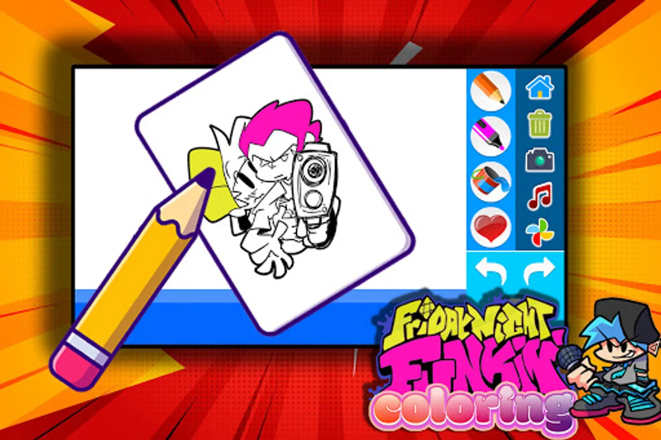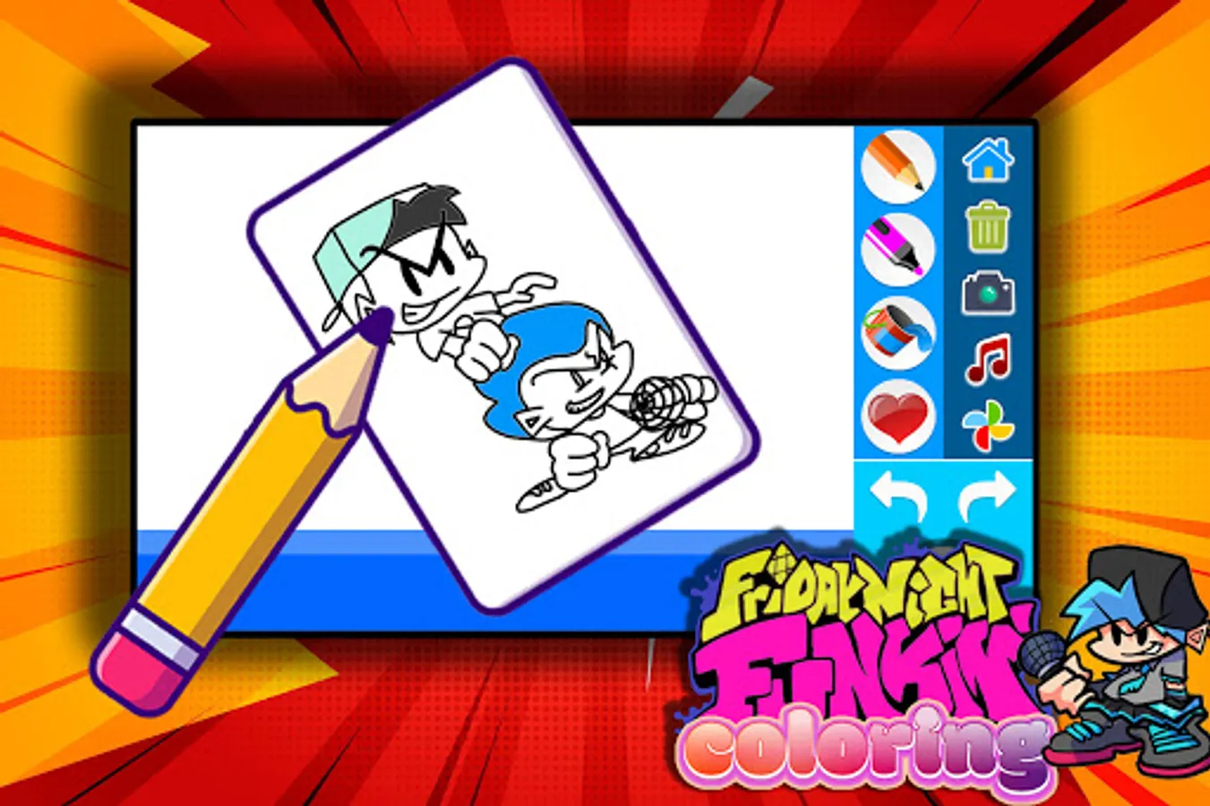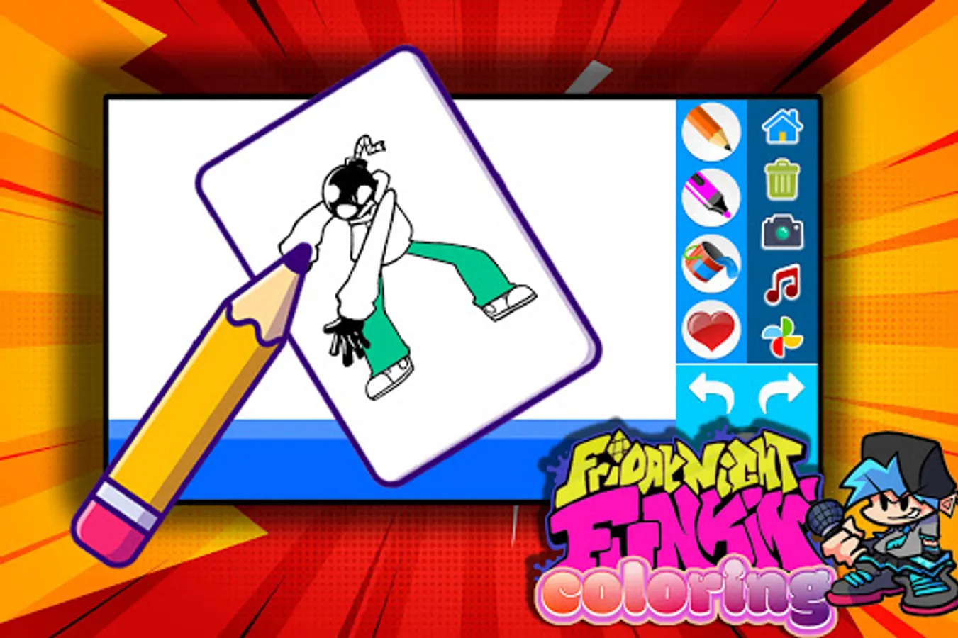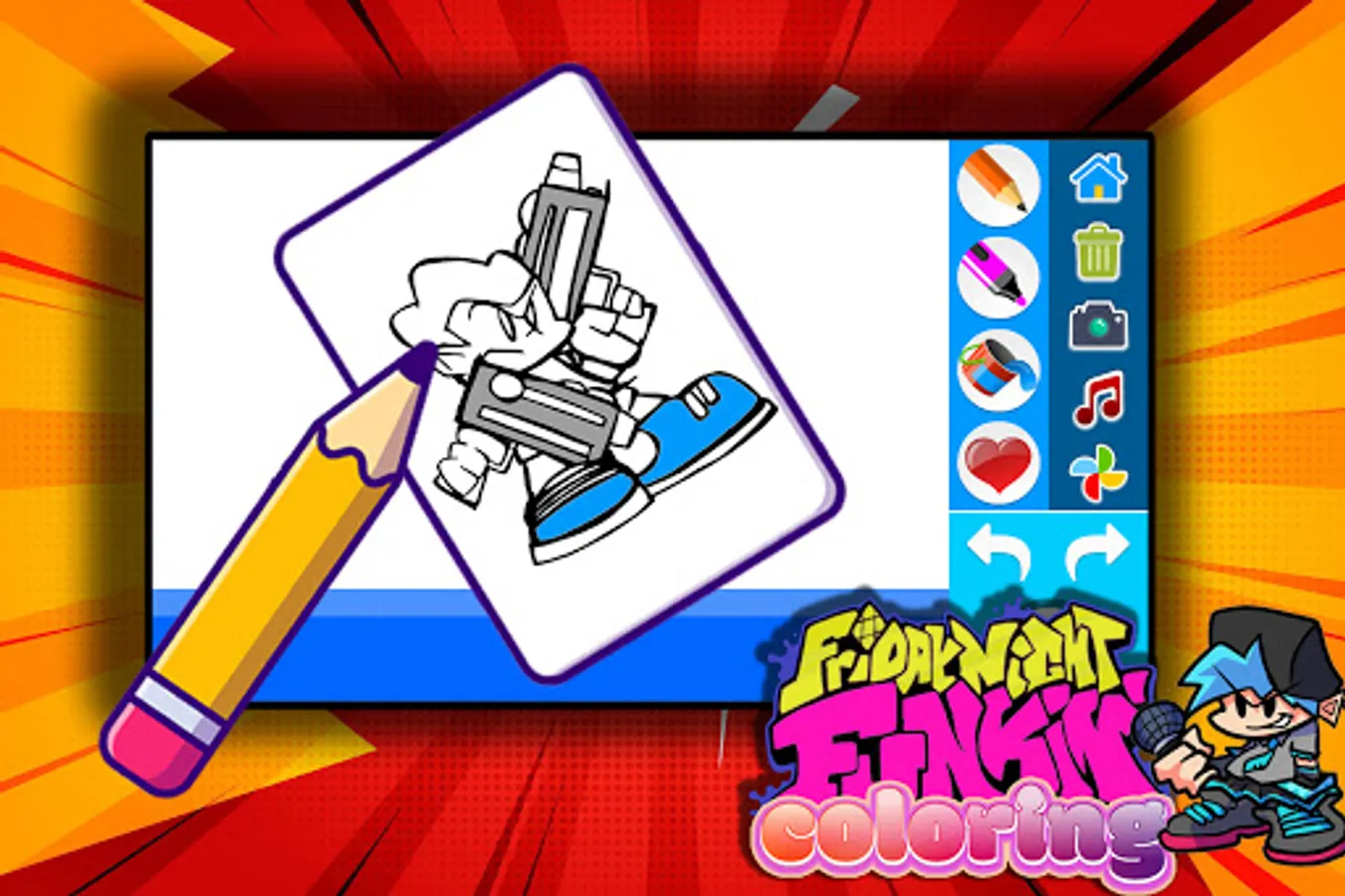 friday night funkin color book is the best app where you will find Friday Night Funkin coloring pages to color it while listning to Friday Night Funkin music.