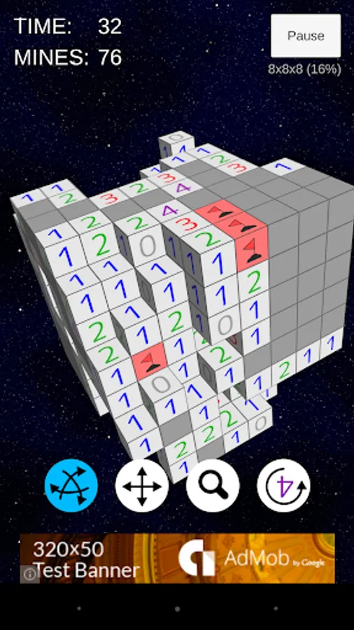 Number represents the number of mines in around 8 square on the surface. Let's mark (put up a flag) the block to dismantle mines.