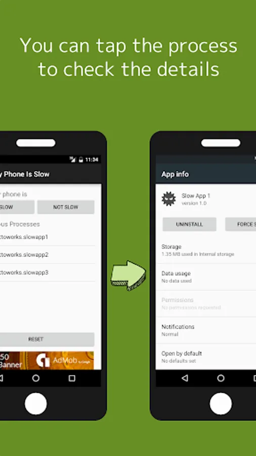 App compare processes that be run when your phone is slow and processes that be run when your phone is now slow.