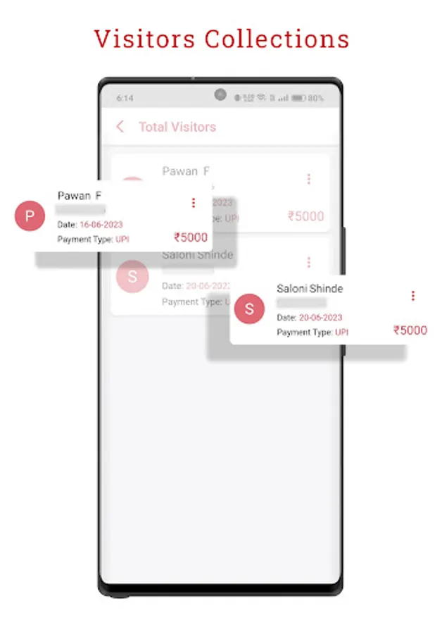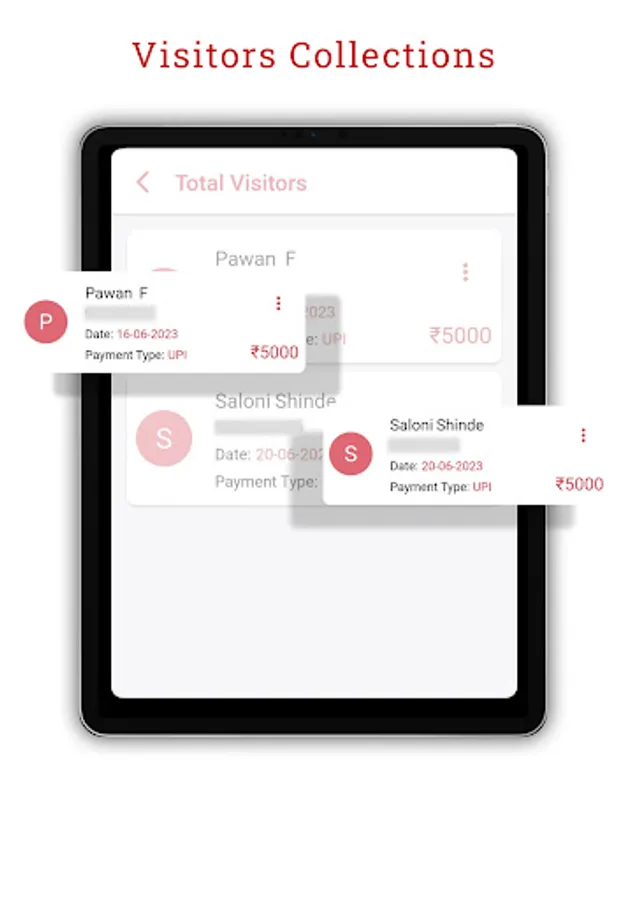 Furthermore, the system tracks the total amount of collections made and displays it as "Collections". This value represents the sum of all the payments collected from members and visitors.