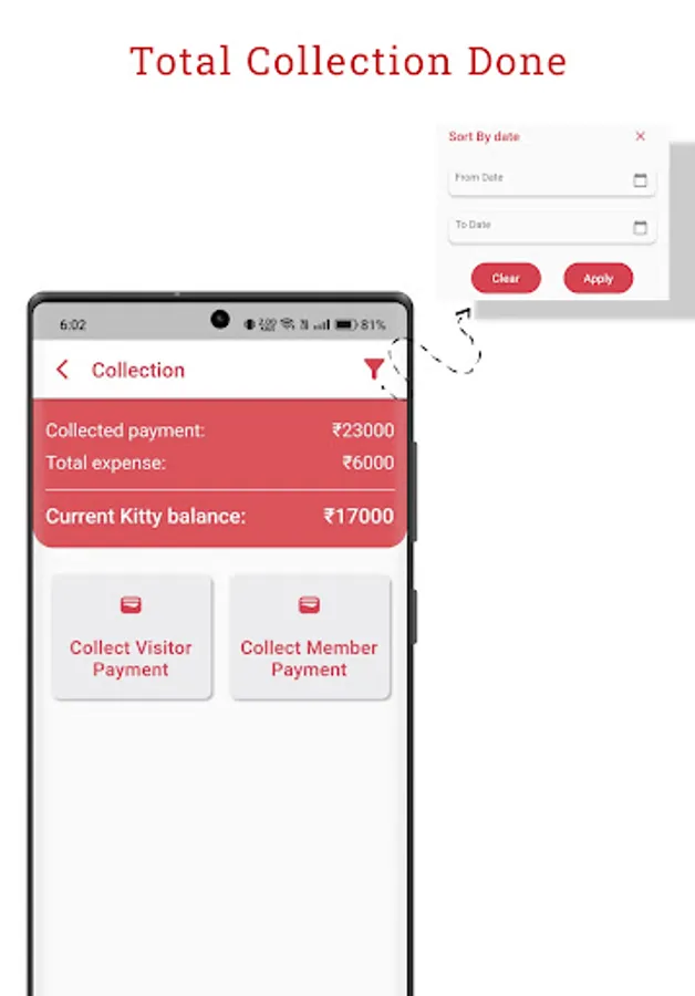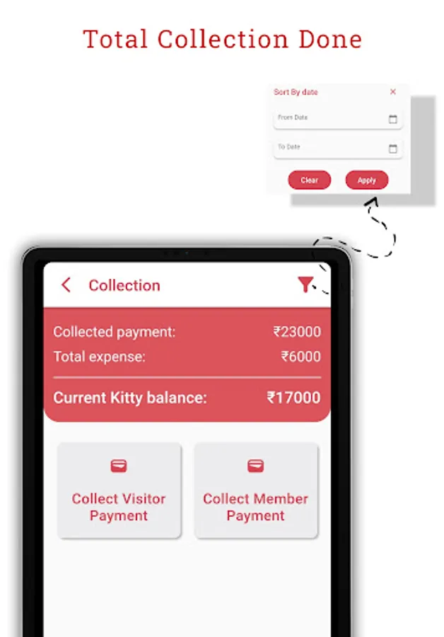 The system also has a feature called "Pending Collection" which determines which members have paid the required amount and which have not.