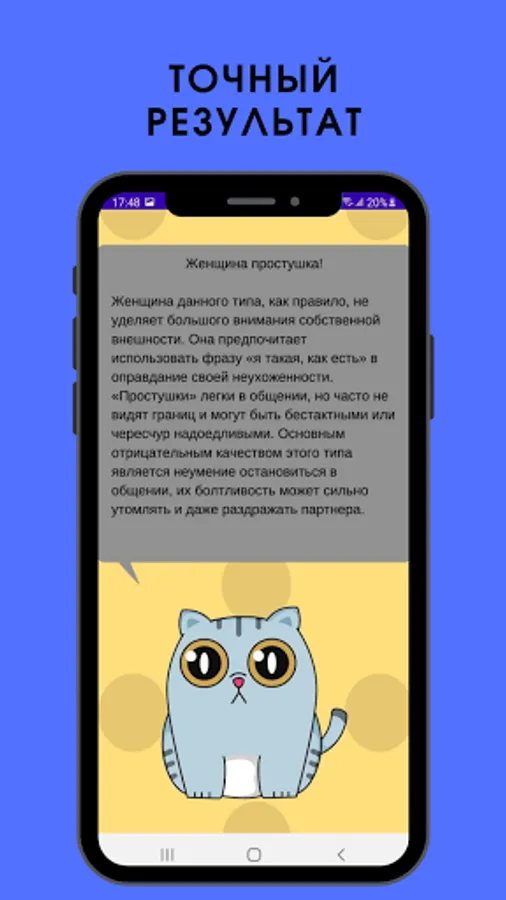 Лучшее приложение для знакомства: мы поможем определить какой тип женщины тебе нужен на примере кошки. Собери себе кошку и мы подскажем какой тип женщины подходит именно тебе.