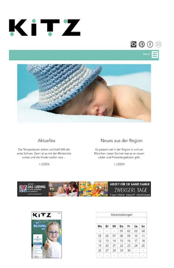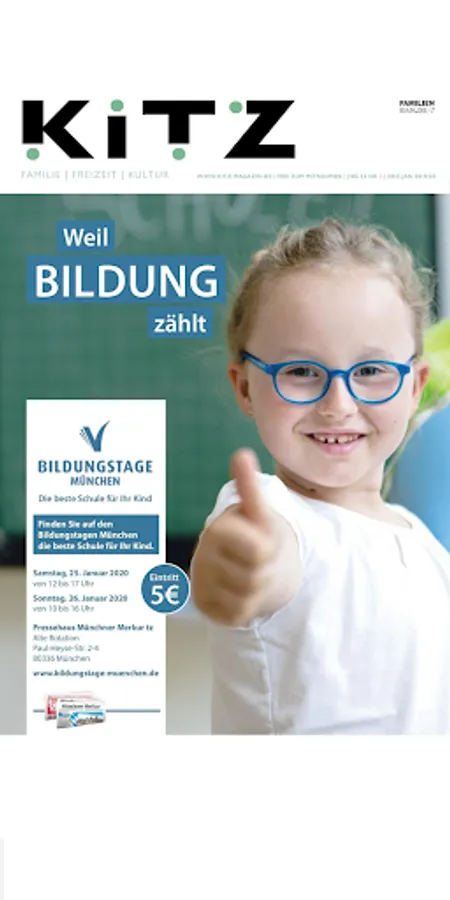 In the app you can find the current KITZ magazine with exciting articles on the family topics of education, health, leisure, fashion, regionality and life. Current tips and sustainable trends such as family travel, children's and baby products, leisure ideas, events, culture and learning, as well as educational topics on school and childcare.