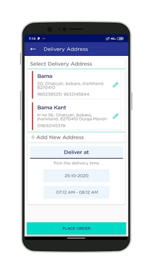 - Select/Add the delivery address and the date and time you want your items to be delivered.
