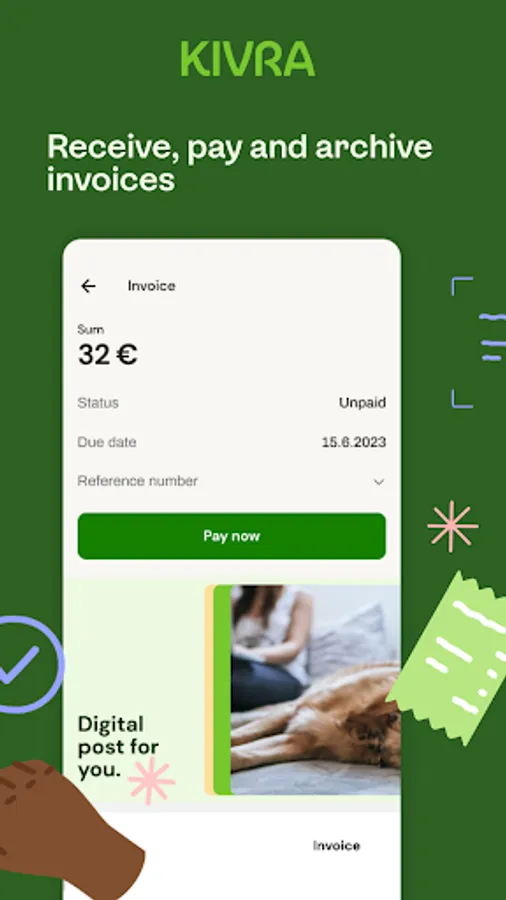 The app notifies you every time you receive new mail and when the due dates are closing. You can pay invoices directly from Kivra app.
