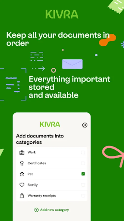 Receive digital mail or upload your own documents to Kivra. A secure mobile archive is always with you.