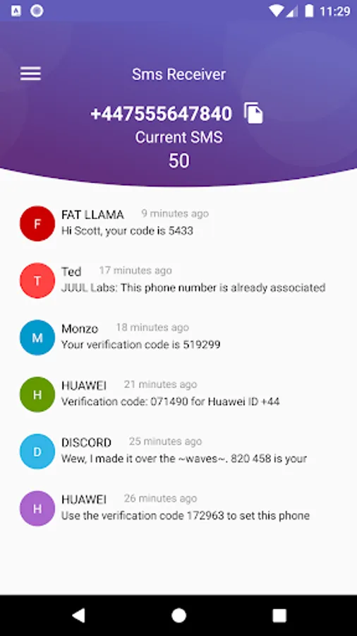 Receive text messages for online verification's as in WhatsApp , Facebook etc.