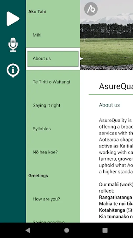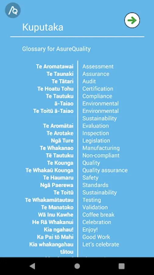 This app will assist you in developing your confidence, knowledge, and capability in te reo Māori and hopefully encourage its use at home or with your colleagues in AsureQuality.