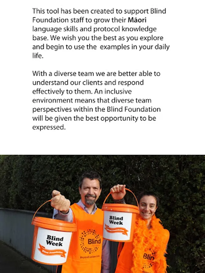 This tool has been created to support Blind Foundation staff to grow their Māori language skills and protocol knowledge base.