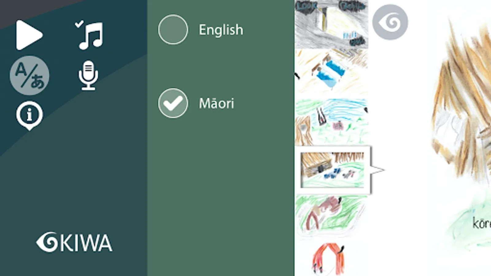 This app contains audio narration in two languages: Māori and English