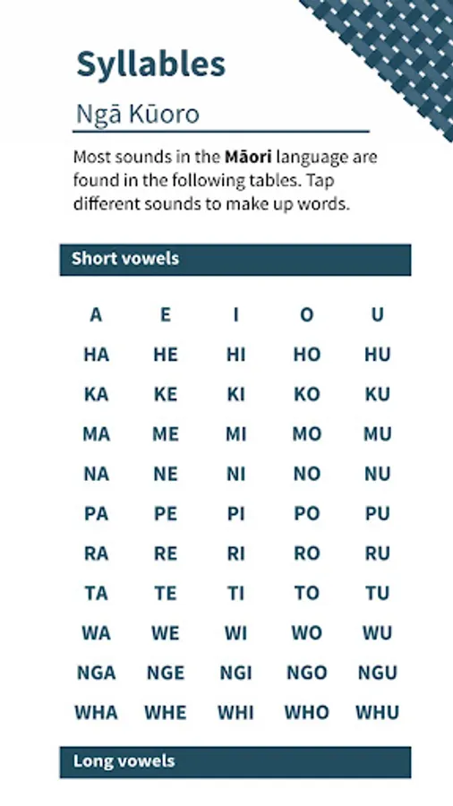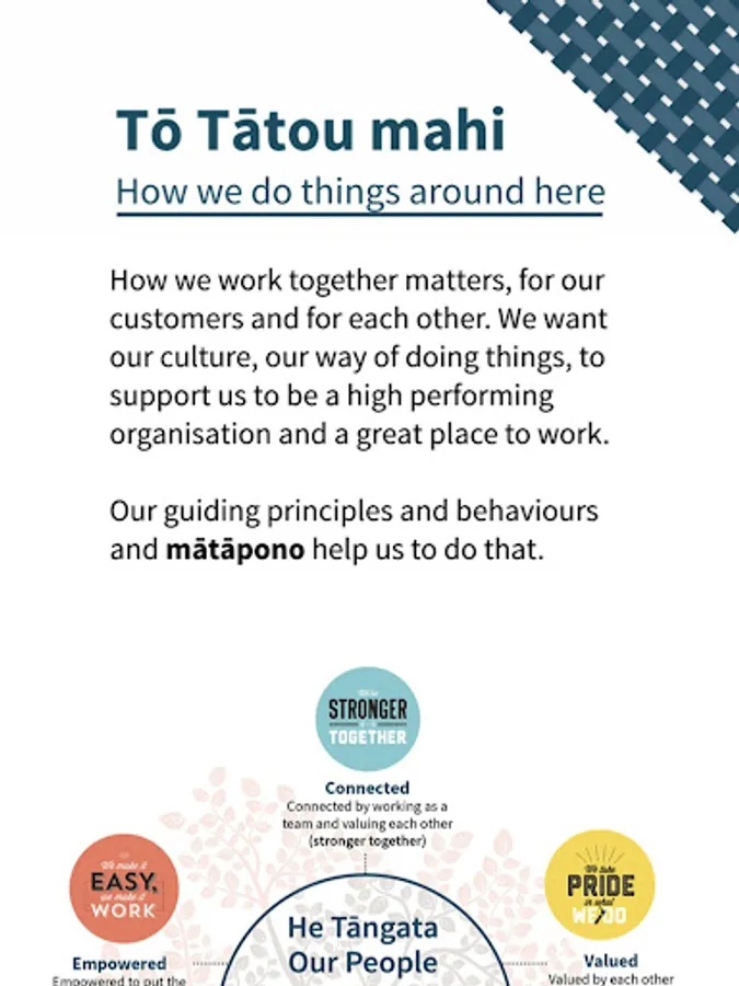 This app aims to increase your knowledge and confidence within a Māori context. It is a tool to give you insight into the Māori world and use in your everyday mahi.
