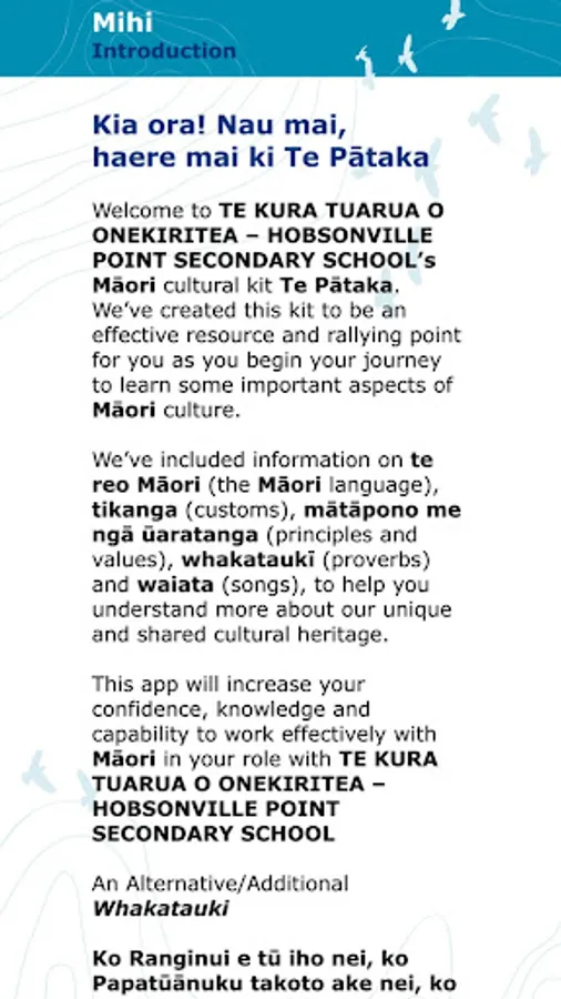 Te Pātaka is an educational resource for Hobsonville Point Secondary students and employees to learn basic te reo Māori and protocol to support their day to day mahi (work).