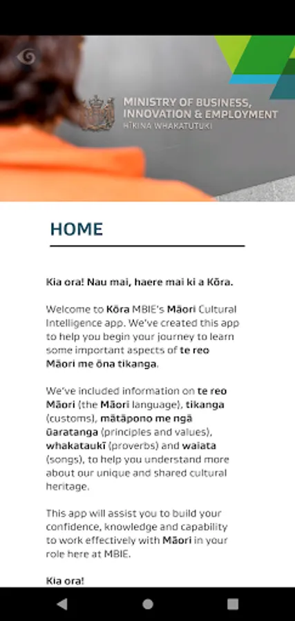 Welcome to Kōra MBIE’s Māori Cultural Intelligence app. We’ve created this app to help you begin your journey to learn some important aspects of te reo Māori me ōna tikanga.