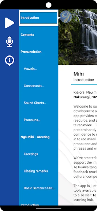 To help you understand more about the unique and shared cultural heritage of Aotearoa, the app includes information on te reo Māori (the Māori language), tikanga (customs), mātāpono me ngā ūaratanga (principles and values), karakia (prayers/affirmation) and waiata (songs).