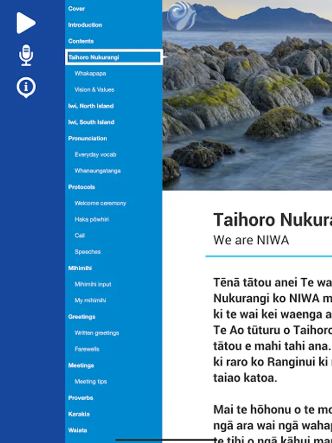 NIWA’s Taihoro Nukurangi App is an educational resource that helps you begin your learning journey with te reo Māori me ona tikanga.