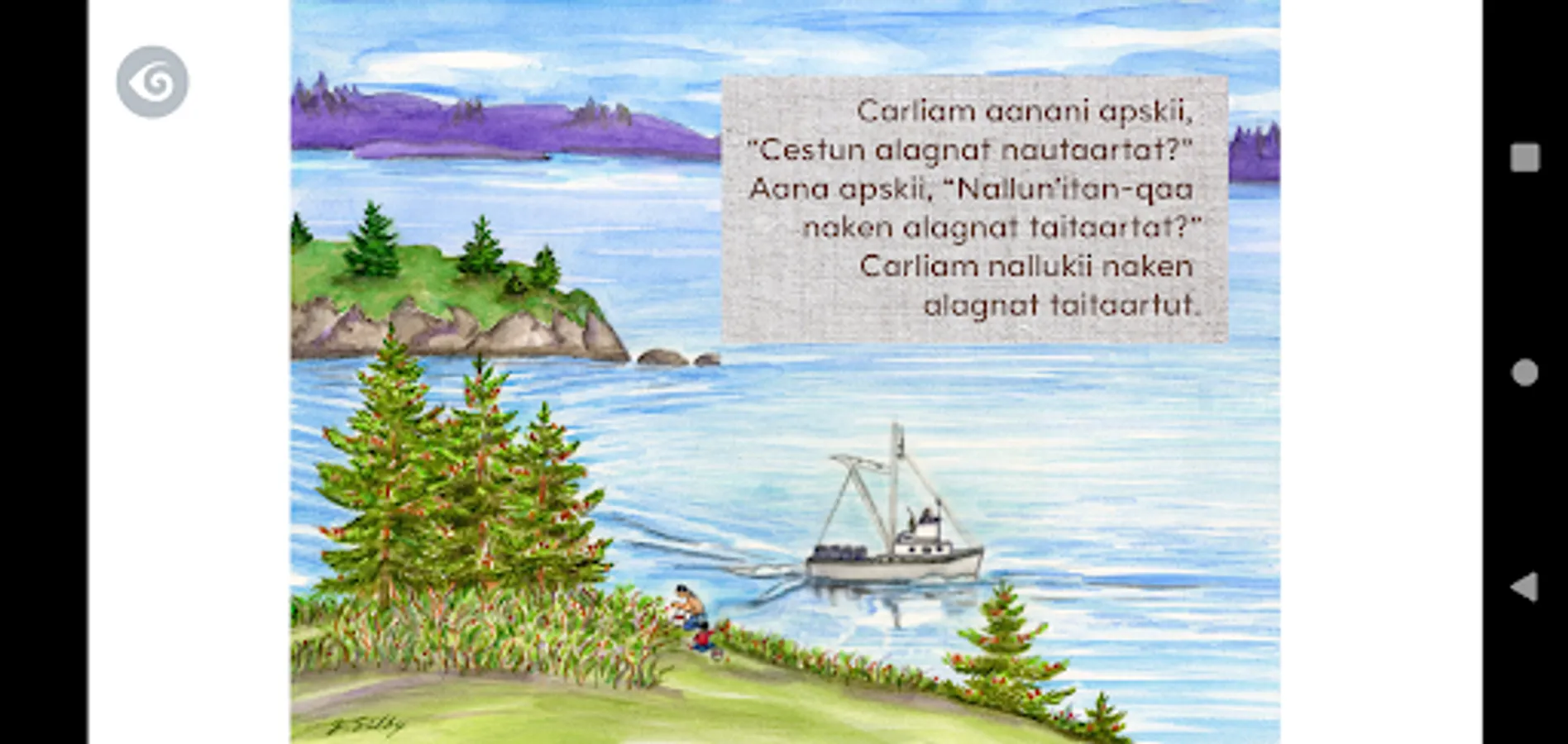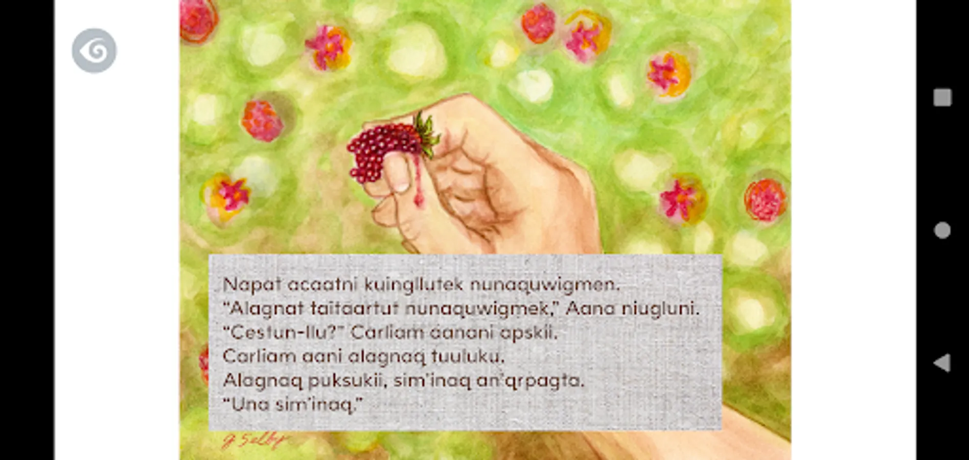 The Alutiiq Museum and Native Village of Afognak have released an app version of the Alutiiq language children’s book Naken taitaartat alagnat?. Written by Gayla Pedersen, narrated by Sophie Takuka'aq Shepherd and illustrated by Gloria Selby, Naken taitaartat alagnat? is a story about a girl and her mother learning about the life cycle of a berry.