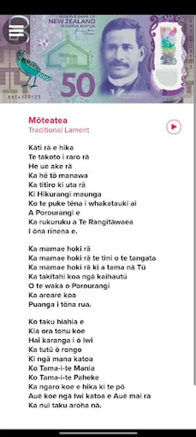 • lyrics and audio of waiata (songs).