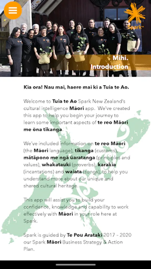 Tuia te ao is an educational resource for Spark New Zealand staff to learn basic Māori language and protocol to support their day to day mahi (work).